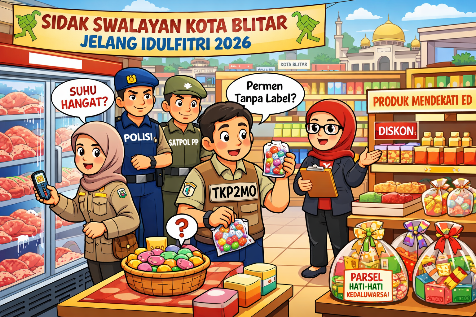 TKP2MO Kota Blitar menegaskan bahwa pengawasan pangan akan terus dilakukan secara berkala hingga H-7 Lebaran. Langkah ini dilakukan guna memastikan masyarakat mendapatkan produk makanan yang aman, bermutu, dan layak edar saat merayakan Idulfitri. (HEV/YUN)