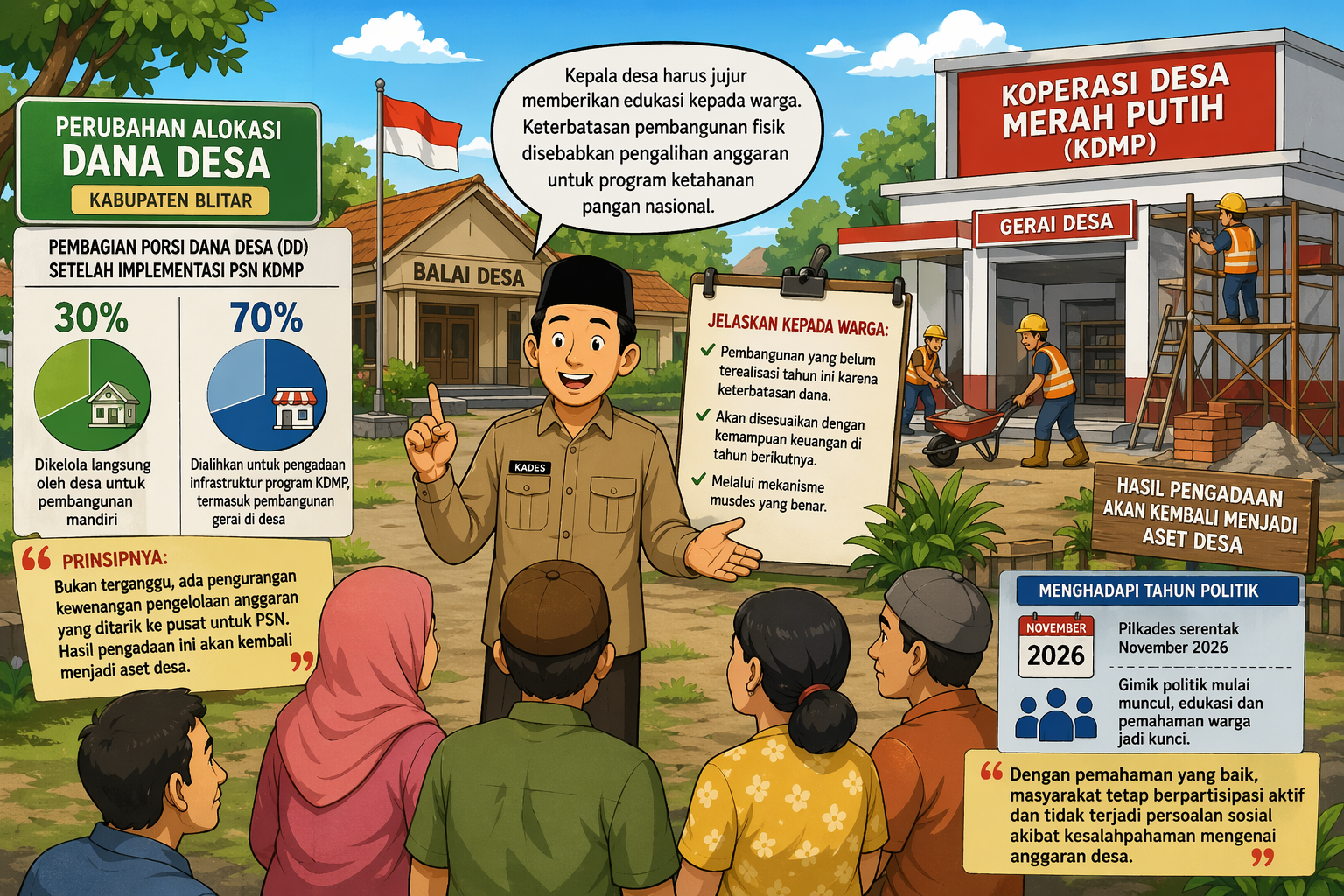 Pelaksanaan Program Strategis Nasional (PSN) melalui Koperasi Desa Merah Putih (KDMP) membawa dampak nyata terhadap struktur anggaran desa di Kabupaten Blitar.
