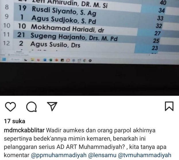 Termasuk tudingan dari Muhammadiyah Disaster Management Center (MDMC) Kabupaten Blitar yang menganggap Musyda PDM Kota Blitar melanggar ketentuan AD/ART dengan sangat serius melalui akun Instagramnya. Bahkan Akun Instagram resmi MDMC Kabupaten Blitar (@mdmckabblitar) memberi isyarat akan ada “serangan fajar” sebagai metode pemenangan calon.